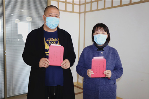 赠送锦旗后,我会会员代表董珈宁宣读了我会写给驰援人员的一封慰问信。随后,王炳中会长向驰援人员家属代表进行捐赠,捐赠的款项将用于资助辽沈地区支援湖北一线疫情防治人员生活补助。