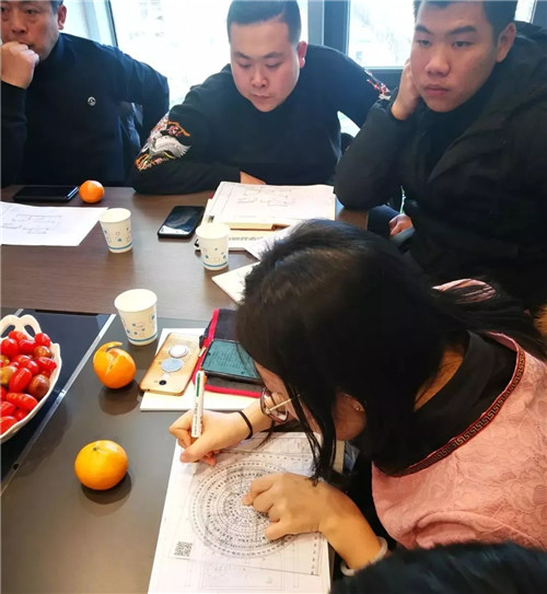 本次活动分为理论回顾和现场实践两部分。理论回顾环节,由王明老师带领大家从风水的起源、发展,到风水在现实生活中的应用逐步进行了回顾。应用八宅风水、金锁玉关风水知识针对将要实践的户型图进行讲解,教大家如何定向、如何使用立极尺以及通过屋宅主人的出生年,确定主人命卦,在遵循东四命住东四宅,西四命住西四宅的原则再结合四吉方、四凶方来布局。王明老讲解言简意赅、幽默风趣,让老学员温故知新的同时又让新参加的设计师也能充分理解风水各项知识含义及在现实设计中应用,现场的研讨氛围十分活跃。 实践环节,场地为住宅,王明老师由住宅外部大环境讲起,到园区建设,再到屋宅内部装修,遵循峦头风水由远及近、由大到小、由外向内的原则,带领大家有思路和条理性的进行知识的融会贯通,学员们把理论知识与现场一一对应,让书面理论知识变成立体的实践经验,学习效果倍增。