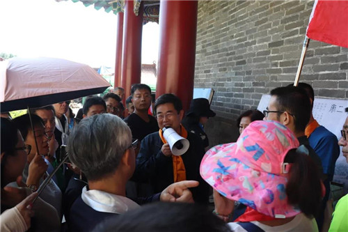 上午共同考察了清永陵。清永陵是安葬努尔哈赤六世祖、曾祖父、祖父、父亲及其叔父的陵寝,堪称大清龙脉。配合导游的讲解,王炳中会长从易学风水视角对永陵进行了专业讲解,使学员们对真正的龙脉、龙虎、水口等理论概念有了实地感受。