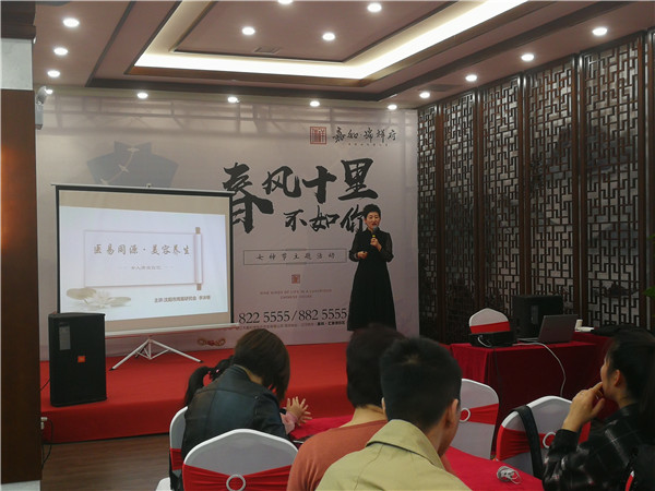 2019年3月9日,值“女神节”之际,我会李沐榕老师应邀为通辽嘉和地产做了一场“医易同源,美容养生”讲座。本次讲座在嘉和瑞祥府接待中心举行,讲座共分为两场,上下午各一场。上午场邀请了通辽旗袍协会部分女企业家,全部着旗袍成为了一道靓丽的风景线。下午场邀请的是通辽嘉和地产的业主。